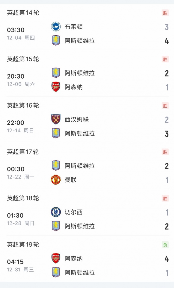 英超官方公告:阿斯顿维拉主帅埃梅里12月率队6场比赛取得5胜,第三次获得月度最佳教练奖。