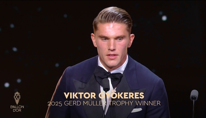 58场63球!官方:乔克尔斯荣获2025年盖德·穆勒奖并当选年度最佳前锋